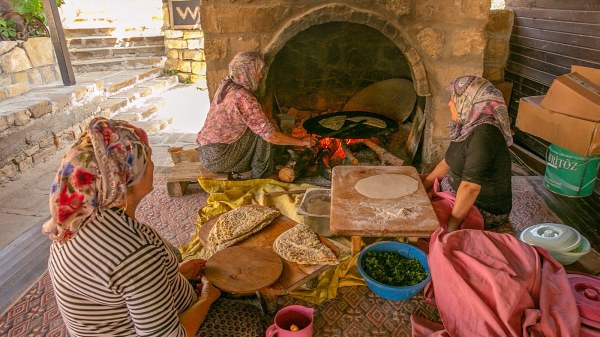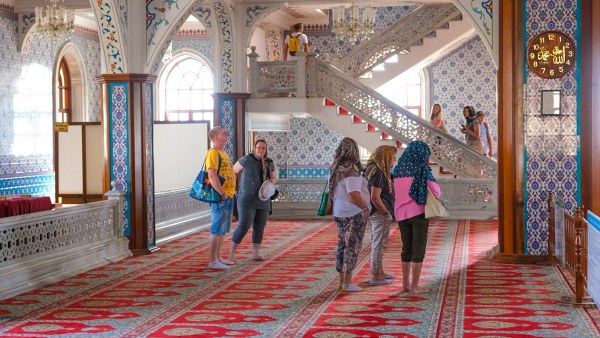 Das offene Buffet-Mittagessen beinhaltet üblicherweise Hähnchen, Reis, Pasta, frische Salate und verschiedene traditionelle türkische Meze.