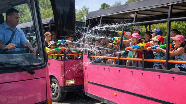Nach der Bootstour geht das Abenteuer in den Safari-Fahrzeugen weiter. Während wir über Offroad-Strecken fahren, sorgen weitere Wasserschlachten für eine ausgelassene Stimmung und jede Menge Spaß.